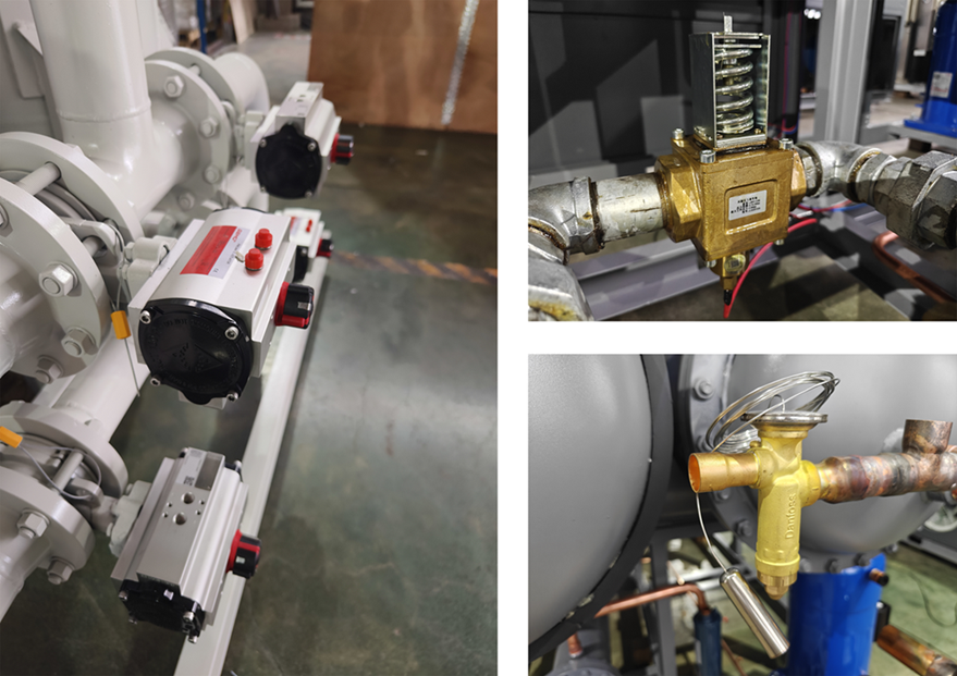 其次,阀门还能调节干燥机内的压力。如冷冻式干燥机中的热气旁通阀,当蒸发压力低于一定程度时,热气旁通阀自动开启,高温冷媒蒸汽进入膨胀阀后端,提升蒸发温度,避免冰堵现象。这有助于维持干燥机内部的稳定压力,保证干燥过程的顺利进行。